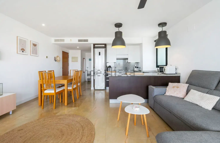 Mieszkanie o powierzchni 99 m² składa się z dwóch przestronnych i jasnych sypialni, każdej z własną łazienką – zapewniając prywatność i komfort wszystkim domownikom. Salon, urządzony w eleganckim stylu, łączy się z nowoczesną, w pełni wyposażoną kuchnią. Dwie prywatne tarasy, dostępne z salonu i jednej z sypialni, pozwalają cieszyć się świeżym powietrzem o każdej porze dnia.
