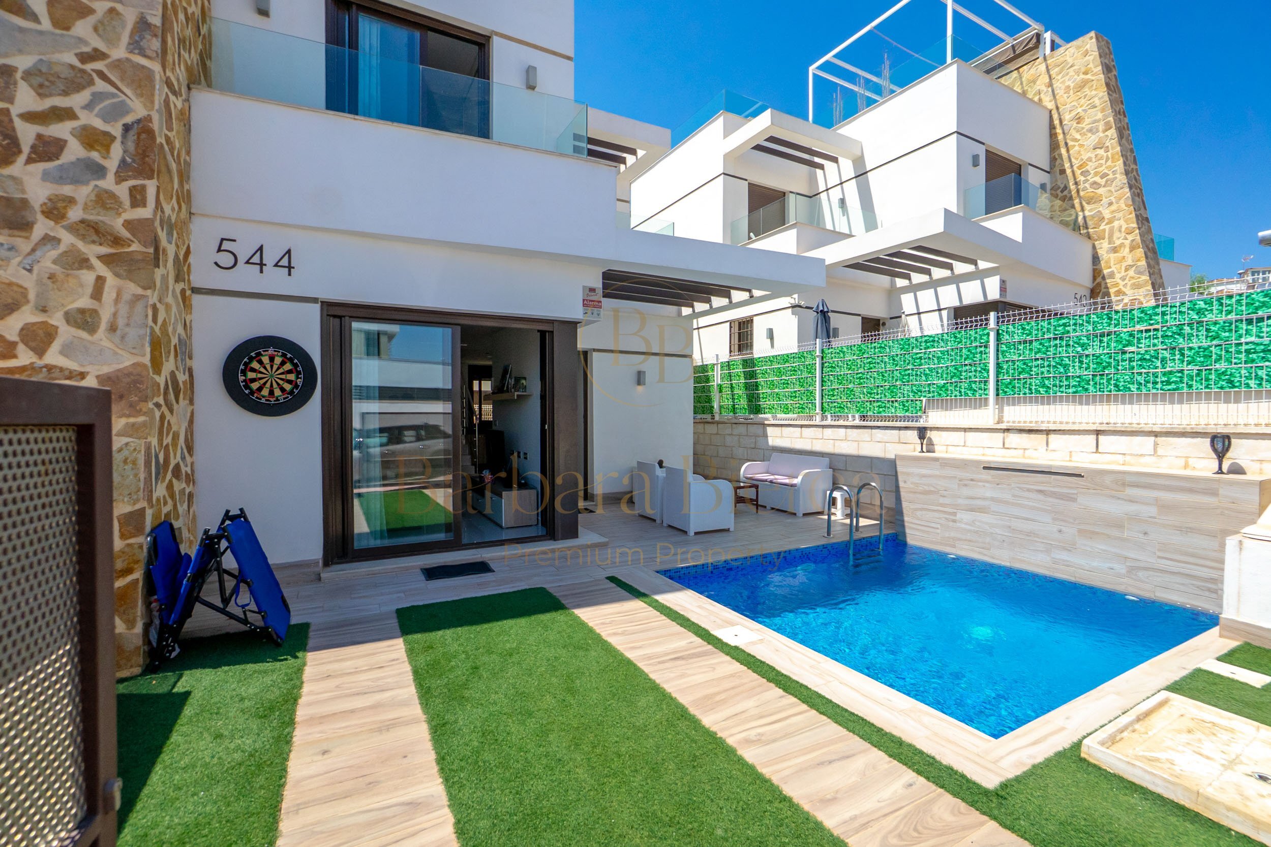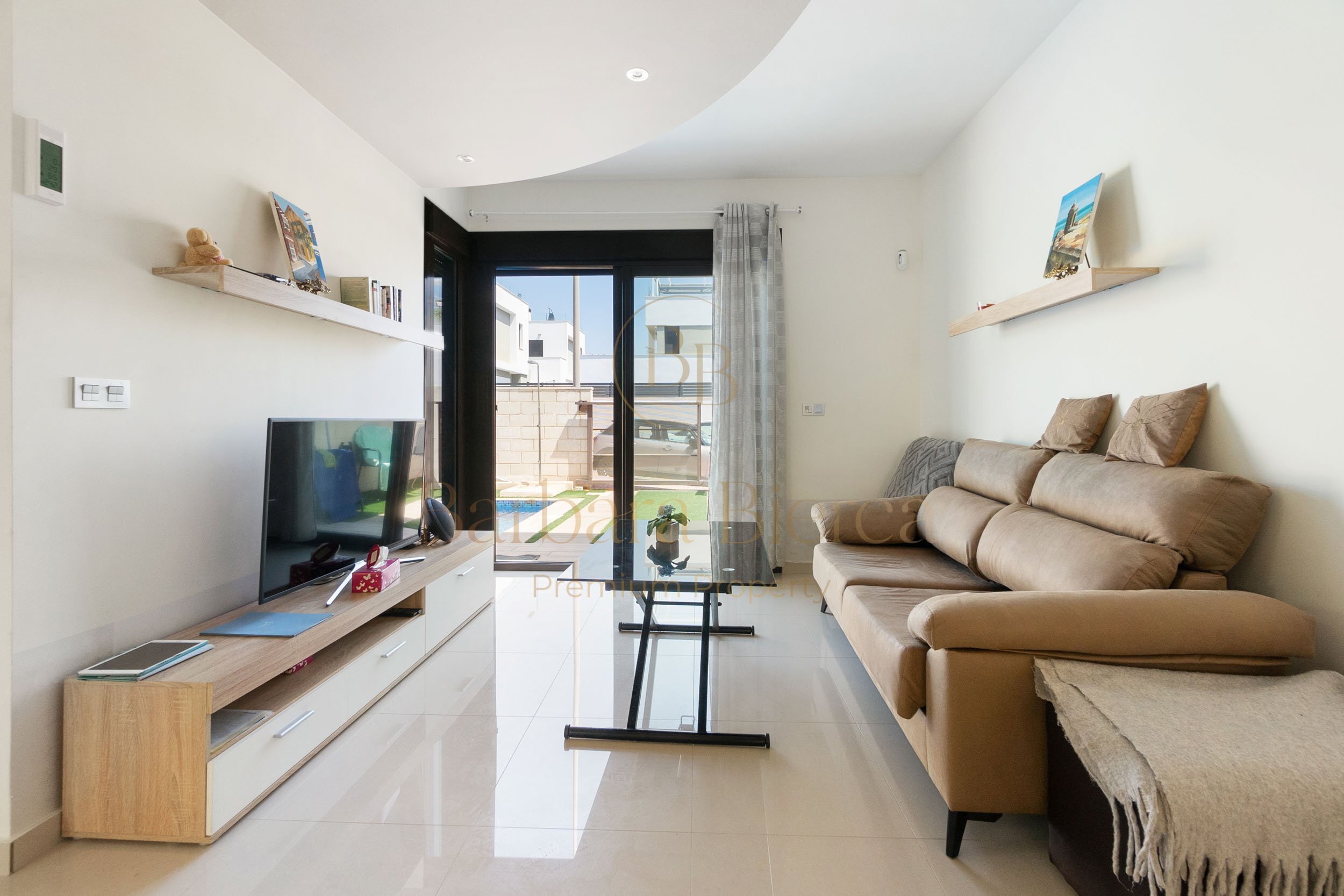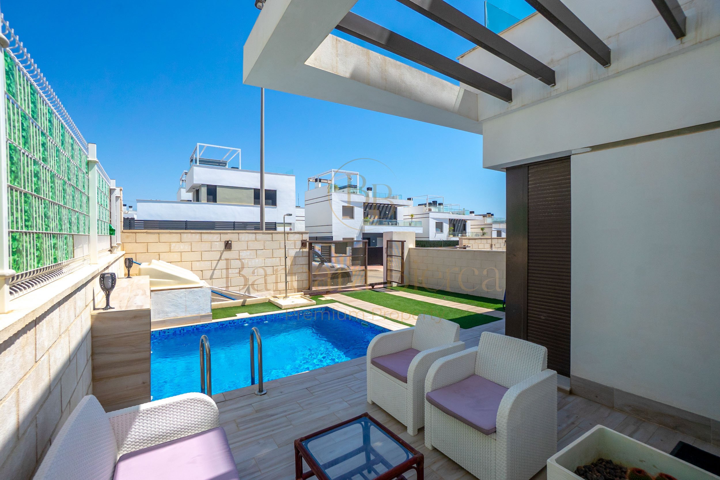 Nowoczesny i zadbany dom bliźniaczy z dwiema sypialniami, dwoma łazienkami, prywatnym basenem oraz słonecznym ogrodem – idealny dla osób ceniących komfort i śródziemnomorski styl życia.